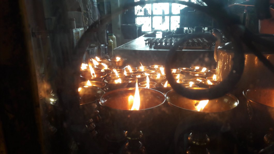 U hramovima se molite okrecuci molitvene valjke koji sadrze i preko 10 000 molitvi u samo jednom okretu u smeru kazaljke na satu, tako da ne morate da zamarate svojim zeljama, mukama i zahtevima samo zavrtite, cuce vas. Bogovi jesu bogovi ali nas je previse i neumereni smo. Ovako, provezbate usput.
